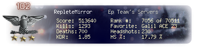| Kills | 1293 | Deaths | 700 | Kill / Death | 1.85 |