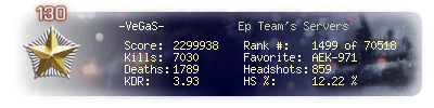 | Headshots | 386 | Suicides | 12 | Headshot / Kill | 9.65 % |