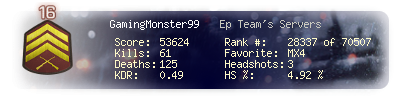 | Kills | 61 | Deaths | 125 | Kill / Death | 0.49 |