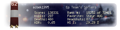 | Headshots | 87 | Suicides | 4 | Headshot / Kill | 29.29 % |