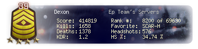 | Kills | 1658 | Deaths | 1378 | Kill / Death | 1.2 |