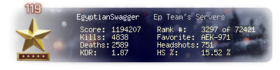| Kills | 4838 | Deaths | 2589 | Kill / Death | 1.87 |