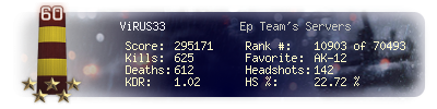 | Headshots | 142 | Suicides | 5 | Headshot / Kill | 22.72 % |