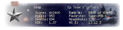 | Headshots | 108 | Suicides | 0 | Headshot / Kill | 12.46 % |