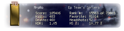 | Headshots | 52 | Suicides | 1 | Headshot / Kill | 10.77 % |
