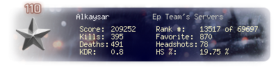 | Kill-streak | 8 | Death-streak | 14 | Team Kills | 1 |