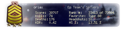 | Kill-streak | 4 | Death-streak | 22 | Team Kills | 1 |