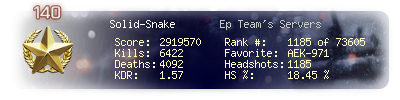 | Kills | 6422 | Deaths | 4092 | Kill / Death | 1.57 |