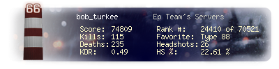 | Kills | 115 | Deaths | 235 | Kill / Death | 0.49 |
