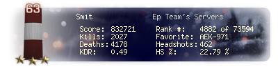 | Kills | 2027 | Deaths | 4178 | Kill / Death | 0.49 |