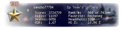 | Kills | 11097 | Deaths | 6656 | Kill / Death | 1.67 |