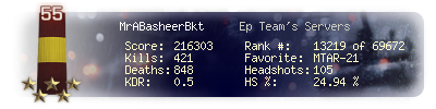 | Kills | 421 | Deaths | 848 | Kill / Death | 0.5 |
