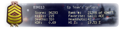 | Kill-streak | 5 | Death-streak | 11 | Team Kills | 0 |