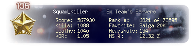 | Kill-streak | 14 | Death-streak | 14 | Team Kills | 1 |
