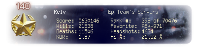 | Kills | 21538 | Deaths | 11506 | Kill / Death | 1.87 |