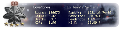 | Kills | 6042 | Deaths | 3087 | Kill / Death | 1.96 |