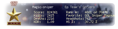 | Headshots | 166 | Suicides | 9 | Headshot / Kill | 44.5 % |