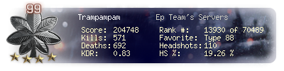 | Kills | 571 | Deaths | 692 | Kill / Death | 0.83 |