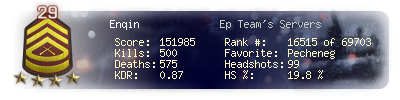 | Kills | 500 | Deaths | 575 | Kill / Death | 0.87 |