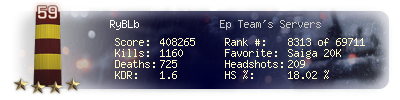 | Kills | 1160 | Deaths | 725 | Kill / Death | 1.6 |