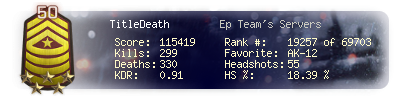 | Headshots | 55 | Suicides | 3 | Headshot / Kill | 18.39 % |