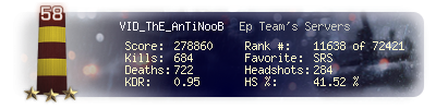 | Headshots | 284 | Suicides | 2 | Headshot / Kill | 41.52 % |