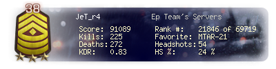 | Headshots | 54 | Suicides | 1 | Headshot / Kill | 24 % |