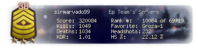 | Headshots | 232 | Suicides | 6 | Headshot / Kill | 22.12 % |