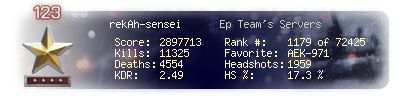 | Kills | 11325 | Deaths | 4554 | Kill / Death | 2.49 |
