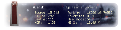 | Headshots | 54 | Suicides | 0 | Headshot / Kill | 18.49 % |