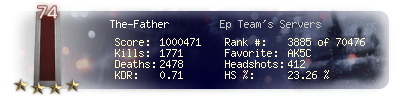 | Headshots | 265 | Suicides | 8 | Headshot / Kill | 22.08 % |