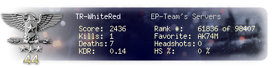 | Kill-streak | 1 | Death-streak | 8 | Team Kills | 0 |