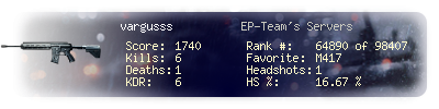| Kill-streak | 4 | Death-streak | 1 | Team Kills | 0 |