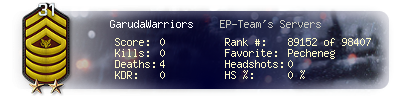 | Suicides | 0 | Headshots | 0 | Headshot / Kill | 0 % |
