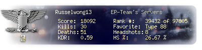 Suicides | 2 | Headshots | 8 | Headshot / Kill | 26.67 % |