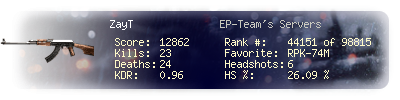 | Kill-streak | 3 | Death-streak | 7 | Team Kills | 0 |