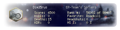 | Kill-streak | 0 | Death-streak | 15 | Team Kills | 0 |