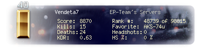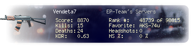 | Kill-streak | 3 | Death-streak | 15 | Team Kills | 0 |
