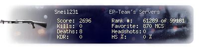 | Suicides | 0 | Headshots | 0 | Headshot / Kill | 0 % |