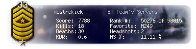 | Kill-streak | 3 | Death-streak | 9 | Team Kills | 0 |