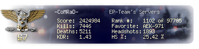 Kills | 7446 | Deaths | 5211 | Kill / Death | 1.43 |