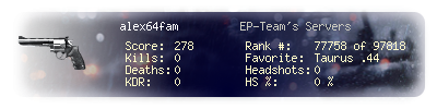 Suicides | 0 | Headshots | 0 | Headshot / Kill | 0 % |