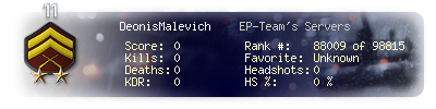 | Suicides | 0 | Headshots | 0 | Headshot / Kill | 0 % |
