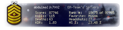 Suicides | 2 | Headshots | 27 | Headshot / Kill | 23.48 % |
