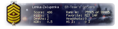 | Suicides | 0 | Headshots | 0 | Headshot / Kill | 0 % |