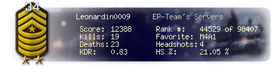 | Kill-streak | 5 | Death-streak | 13 | Team Kills | 0 |