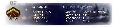 | Kill-streak | 2 | Death-streak | 3 | Team Kills | 0 |