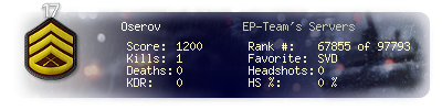 Suicides | 0 | Headshots | 0 | Headshot / Kill | 0 % |
