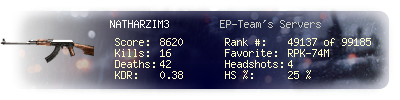 | Kill-streak | 3 | Death-streak | 9 | Team Kills | 0 |