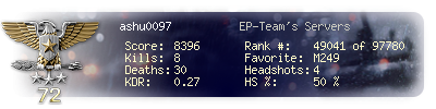 Kills | 8 | Deaths | 30 | Kill / Death | 0.27 |